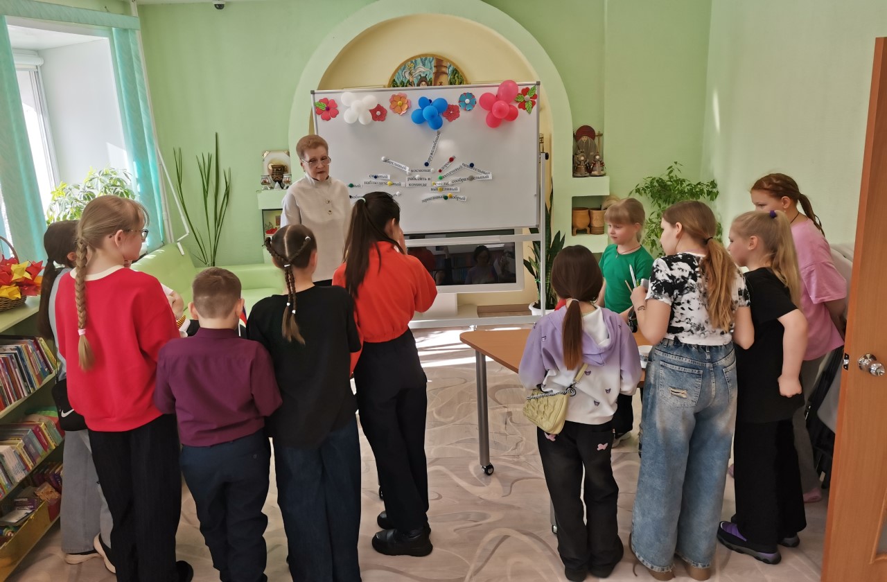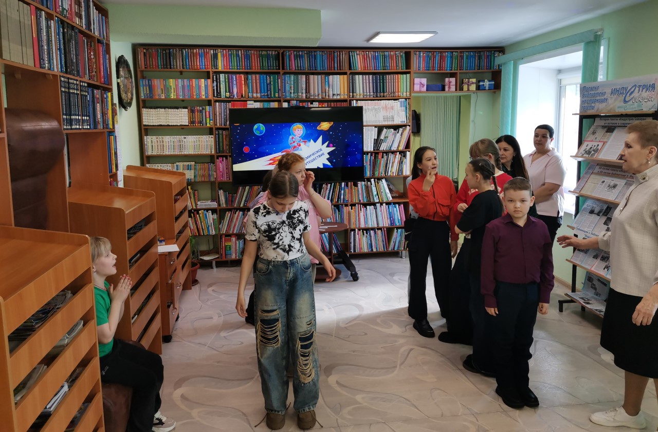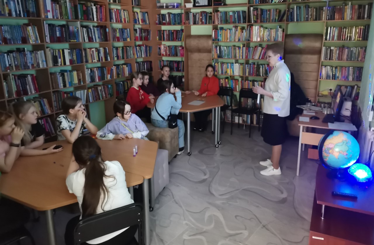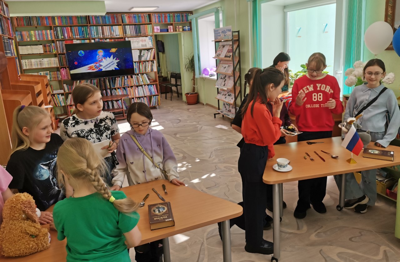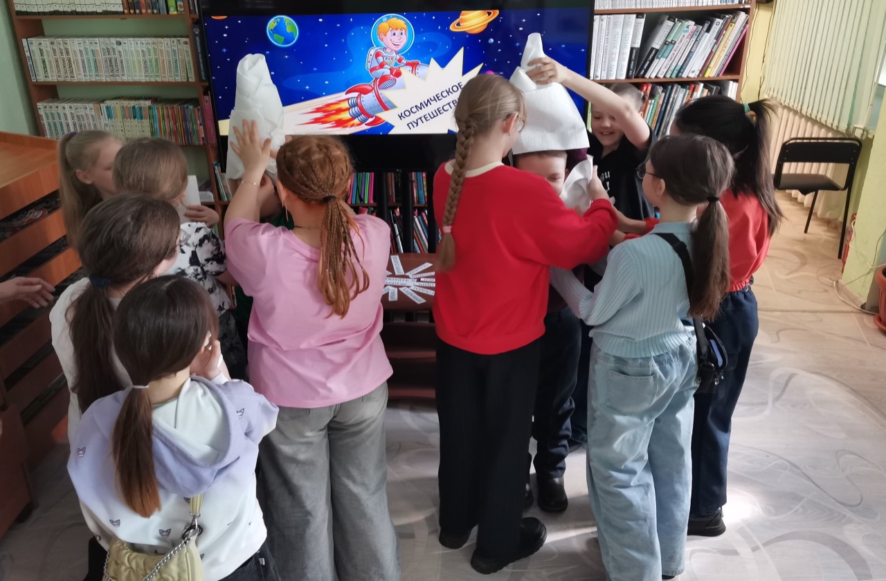 С целью формирования чувства патриотизма через знакомство с великими достижениями и открытиями русского человека, была проведена игровая программа «Путешествие в космос». Мероприятие началось с увлекательной беседы о загадочном мире звёзд и планет. Знакомство с Солнечной системой включало интересные факты и сопровождалось слайд презентацией. Затем библиотекарь Цырульникова Т. И. рассказала ребятам о том, как человек осваивал космическое пространство, о великих космонавтах нашей страны, о полёте Юрия Алексеевича Гагарина в космос ровно 65 лет назад.